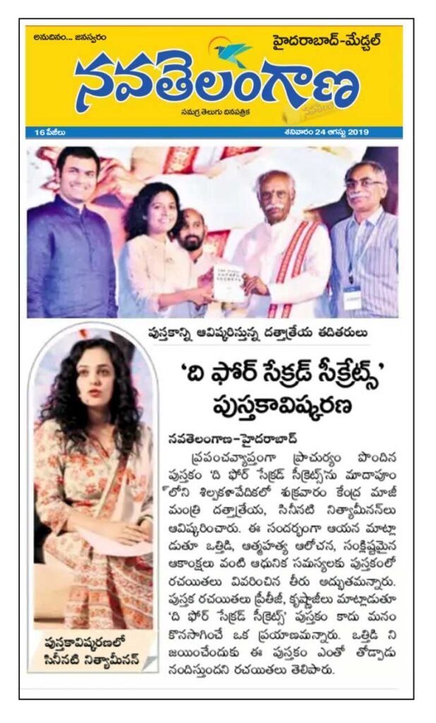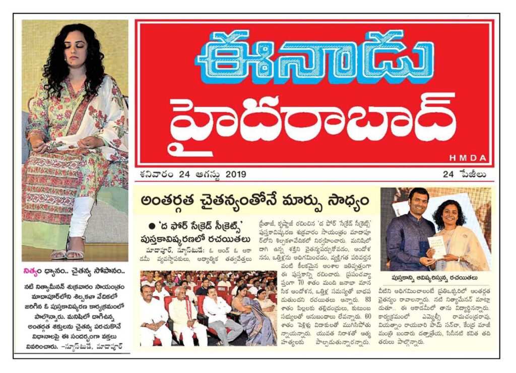 インド各雑誌、メディアに掲載されました。政治指導者Bandaru Dattatreya、Nitha Menon女優、A guest女優、Roja女優、Kavitha女優、起業家慈善家Neelima Aryaなど各著名人が出版イベントに参加。